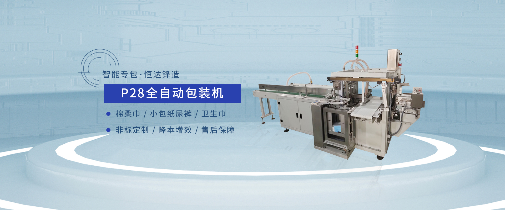 廈門恒達(dá)鋒機(jī)械有限公司成立于2008年,是一家集產(chǎn)品研發(fā)、生產(chǎn)、銷售、服務(wù)于一體的現(xiàn)代型企業(yè)。恒達(dá)鋒系列產(chǎn)品已覆蓋護(hù)理墊、衛(wèi)生巾、紙尿褲、拉拉褲、寵物墊等后道全自動包裝及半自動包裝等整體解決方案,產(chǎn)品并逐漸延伸至醫(yī)療、化妝品、食品等包裝裝備領(lǐng)域。